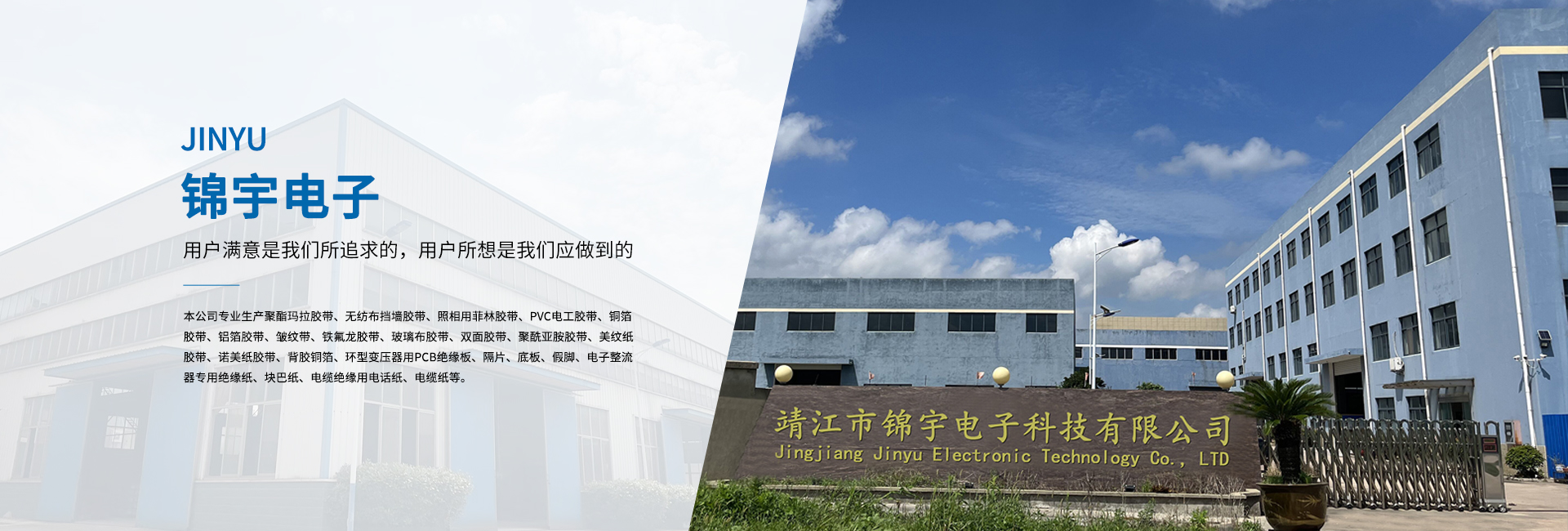 靖江市錦宇電子科技有限公司地處—靖江市。與上海、南京隔江相望,滬寧高速和京滬高速將蘇錫常及京廣連為一體,東依開放港口城市南通,西連新長鐵路,南臨長江萬噸船用碼頭,北接寧通一級高速公路,水陸交通便捷,經營環(huán)境優(yōu)良。 本公司專業(yè)生產聚酯瑪拉膠帶、無紡布擋墻膠帶、照相用菲林膠帶、PVC電工膠帶、銅箔膠帶、鋁箔膠帶、皺紋帶、鐵氟龍膠帶、玻璃布膠帶、雙面膠帶、聚酰亞胺膠帶、美紋紙膠帶、諾美紙膠帶、背膠銅箔、環(huán)型變壓器用PCB絕緣板、隔片、底板、假腳、電子整流器專用絕緣紙、塊巴紙、電纜絕緣用電話紙、電纜紙等。 公司依靠先進的科學管理,精良的生產裝備,合理的工藝設計,完善的檢測設備,以著“科技創(chuàng)新、質量為本、誠信服務”的信念。并嚴格貫徹ISO9001國際質量體系的程序和規(guī)格,為廣大用戶提供優(yōu)質的產品與滿意的服務。 多年來,公司本著“用戶滿意是我們所追求的,用戶所想是我們應做到的”的經營理念;“質量保障,價格合理,服務誠信”的企業(yè)宗旨。熱忱歡迎海內外各界人士、朋友前來洽談、合作,攜手共創(chuàng)輝煌的明天。